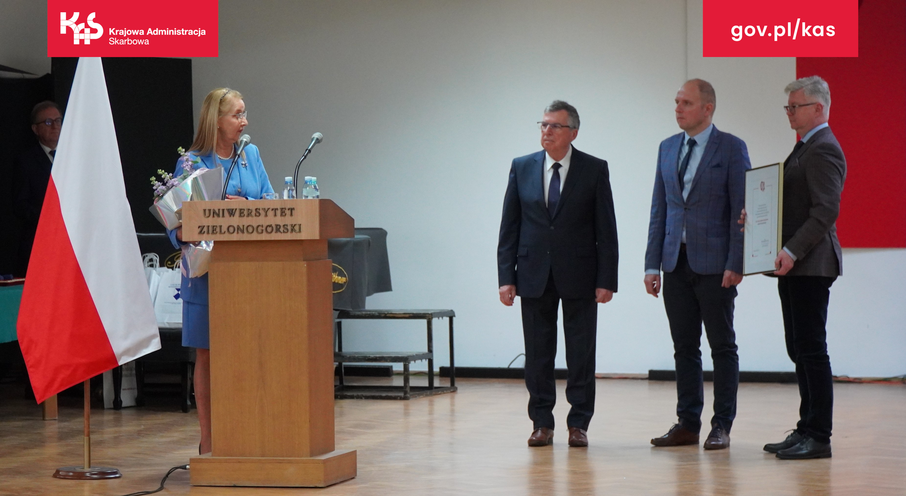 10 grudnia 2025 r. w Auli Uniwersytetu Zielonogórskiego spotkali się przedstawiciele lubuskiej administracji, nauki i kultury. W spotkaniu zorganizowanym z inicjatywy Wojewody Lubuskiego, Lubuskiego Wojewódzkiego Konserwatora Zabytków oraz Instytutu Historii Uniwersytetu Zielonogórskiego, uczestniczył także zastępca Dyrektora Izby Administracji Skarbowej w Zielonej Górze, Arkadiusz Nowacki. Podczas konferencji wręczono medale i odznaczenia osobom zasłużonym dla badań nad historią regionu oraz promocji dorobku Ziemi Lubuskiej w skali kraju. Specjalne wyróżnienie, Honorowe Członkostwo Polskiego Towarzystwa Historycznego, otrzymał prof. dr hab. Czesław Osękowski.