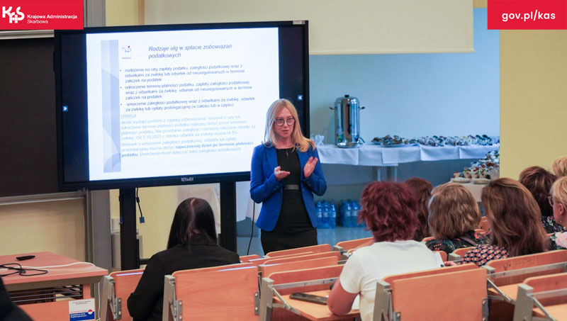 Przedstawicielki z IAS w Zielonej Górze omówiły formy opodatkowania działalności gospodarczej oraz zasady udzielania ulg w spłacie zaległości podatkowej. Przedstawiły także konsekwencje, których obecni lub przyszli przedsiębiorcy, mogą się spodziewać jeśli nie opłacą odpowiednich należności.