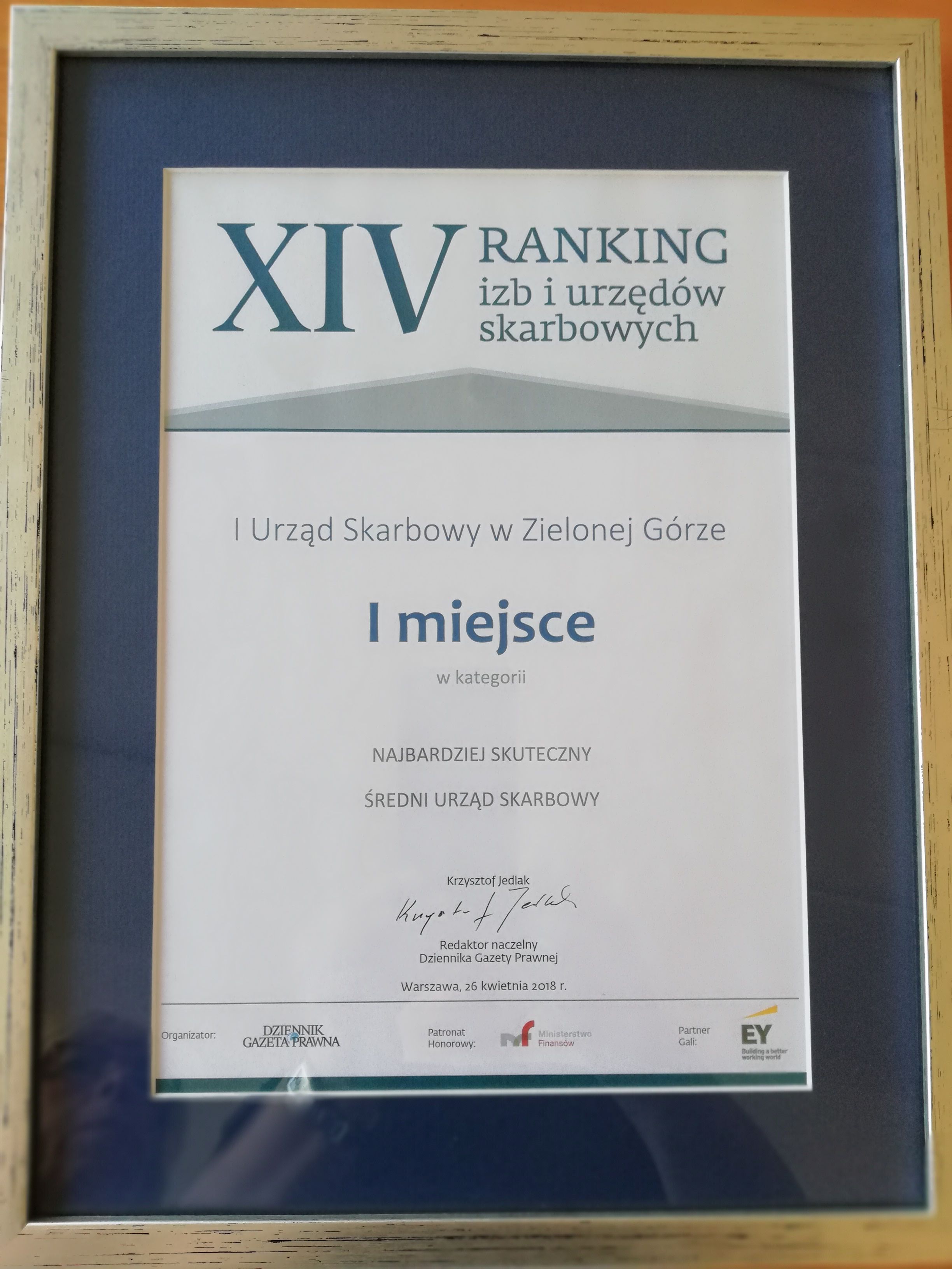 Dyplom w ramach XIV Rankingu izb i urzędów skarbowych