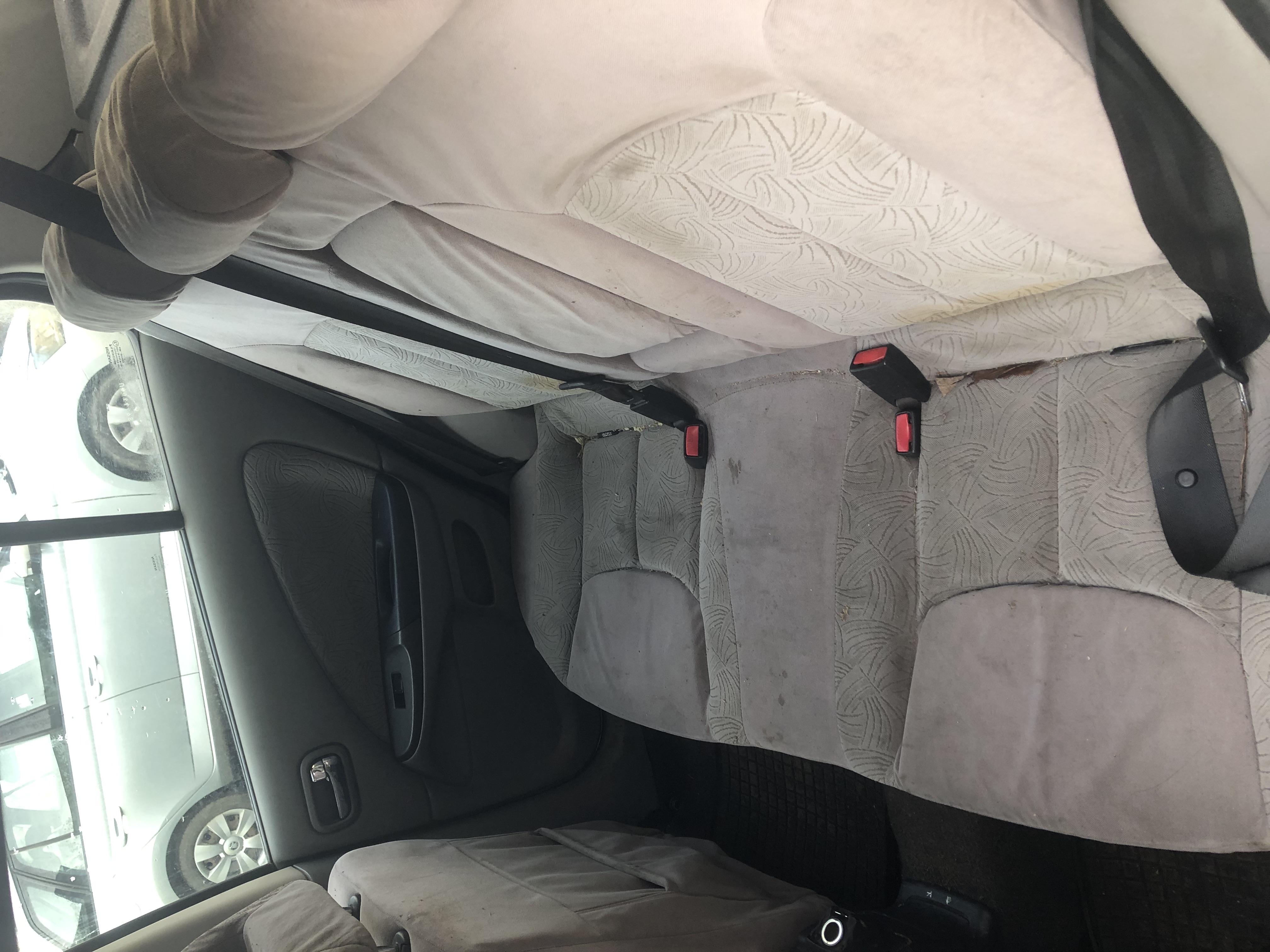 Tylka kanapa Nissana Almera z szarymi, zabrudzonymi, welurowymi pokrowcami
