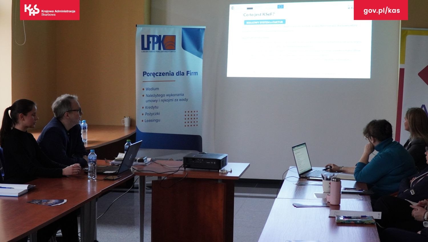 Trenerzy Krajowego Systemu e-Faktur (KSeF) z Pierwszego i Lubuskiego Urzędu Skarbowego w Zielonej Górze Maciej Stachowicz i Sandra Milewska przeszkolili przedsiębiorców zrzeszonych przy Zachodniej Izbie Przemysłowo-Handlowej oddział w Zielonej Górze.