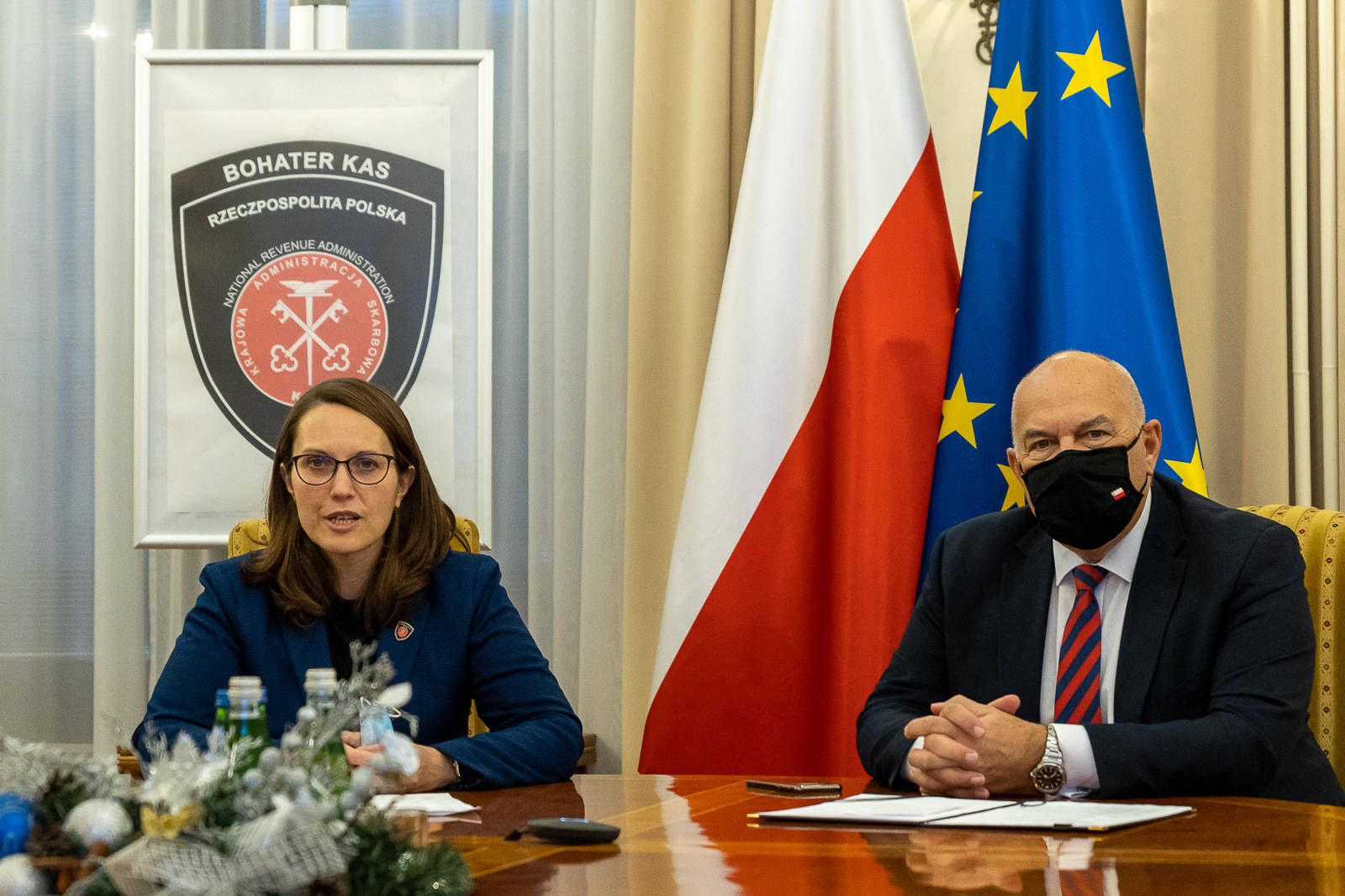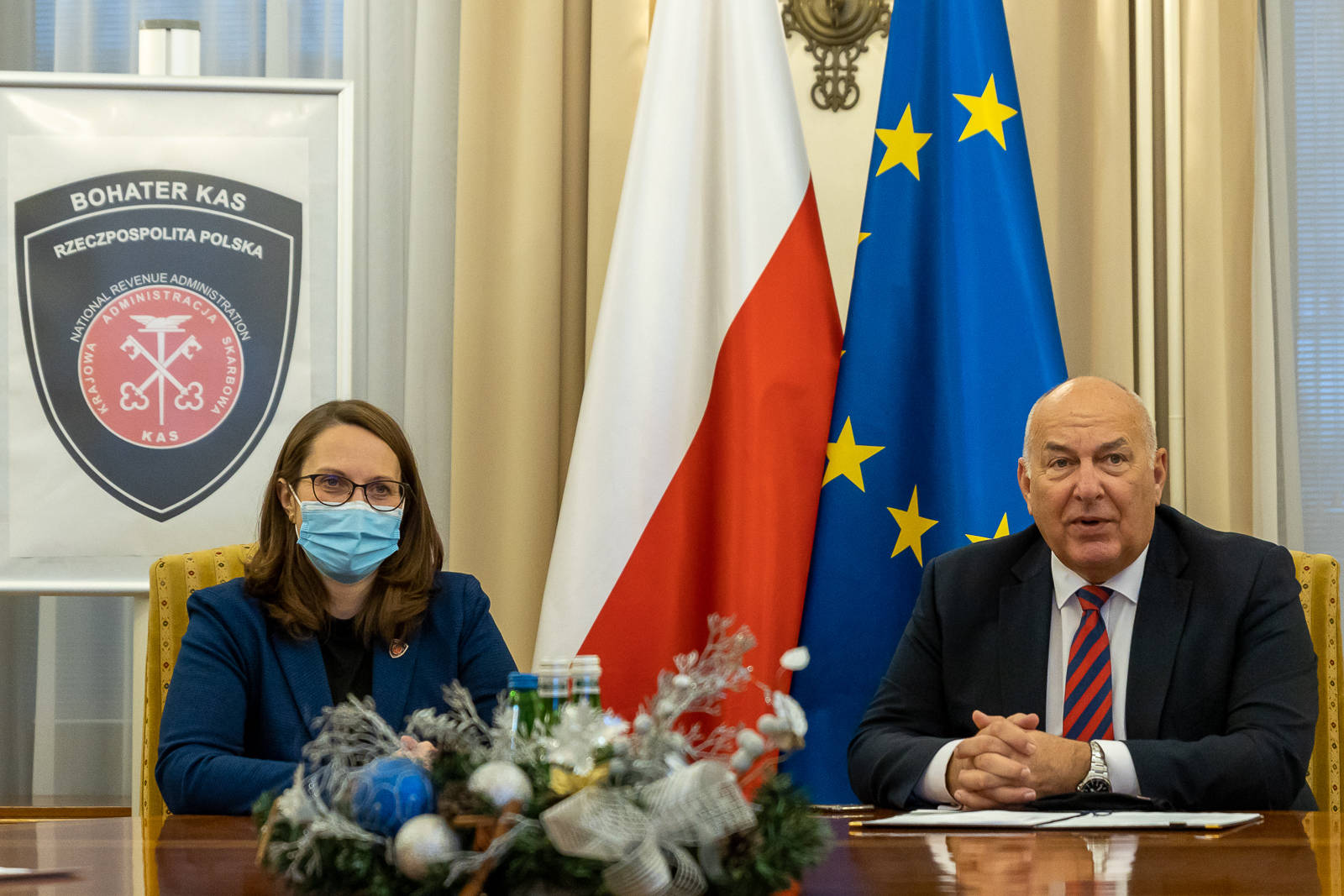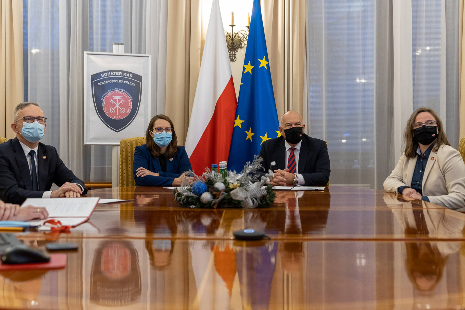 Minister Finansów Tadeusz Kościński, Szef KAS Magdalena Rzeczkowska oraz Zastępcy Szefa KAS – Anna Chałupa oraz Mariusz Gojny spotkali się z Bohaterami KAS. Ministrowie podziękowali wyróżnionym osobom za zaangażowanie i udział w bohaterskich działaniach, które wykraczają poza ich codzienne obowiązki służbowe. To niezwykle budujące, że obok nas jest tak dużo osób, które swoją szlachetną postawą inspirują każdego dnia.