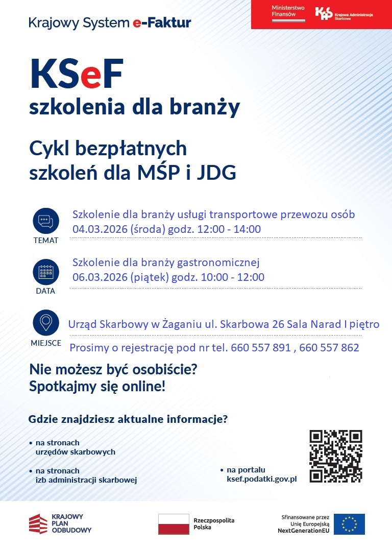 KSeF - szkolenia dla branży - 4 i 6 marca w Urzędzie Skarbowym w Żaganiu