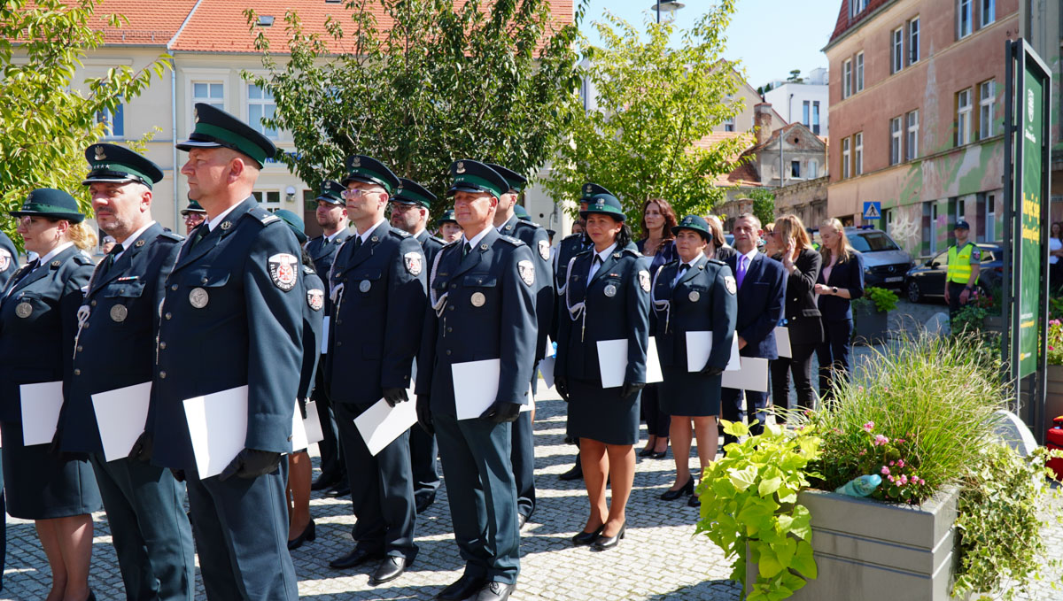 Następnie Szef KAS przyjął meldunek od dowódcy uroczystości starszego aspiranta Mariusza Słowika i dokonał przeglądu i przywitania pododdziałów. W dalszej części uroczystości funkcjonariuszom i pracownikom lubuskiej KAS wręczono odznaczenia państwowe i resortowe, mianowania na stopnie oficerskie oraz awanse na wyższe stanowiska w służbie cywilnej.